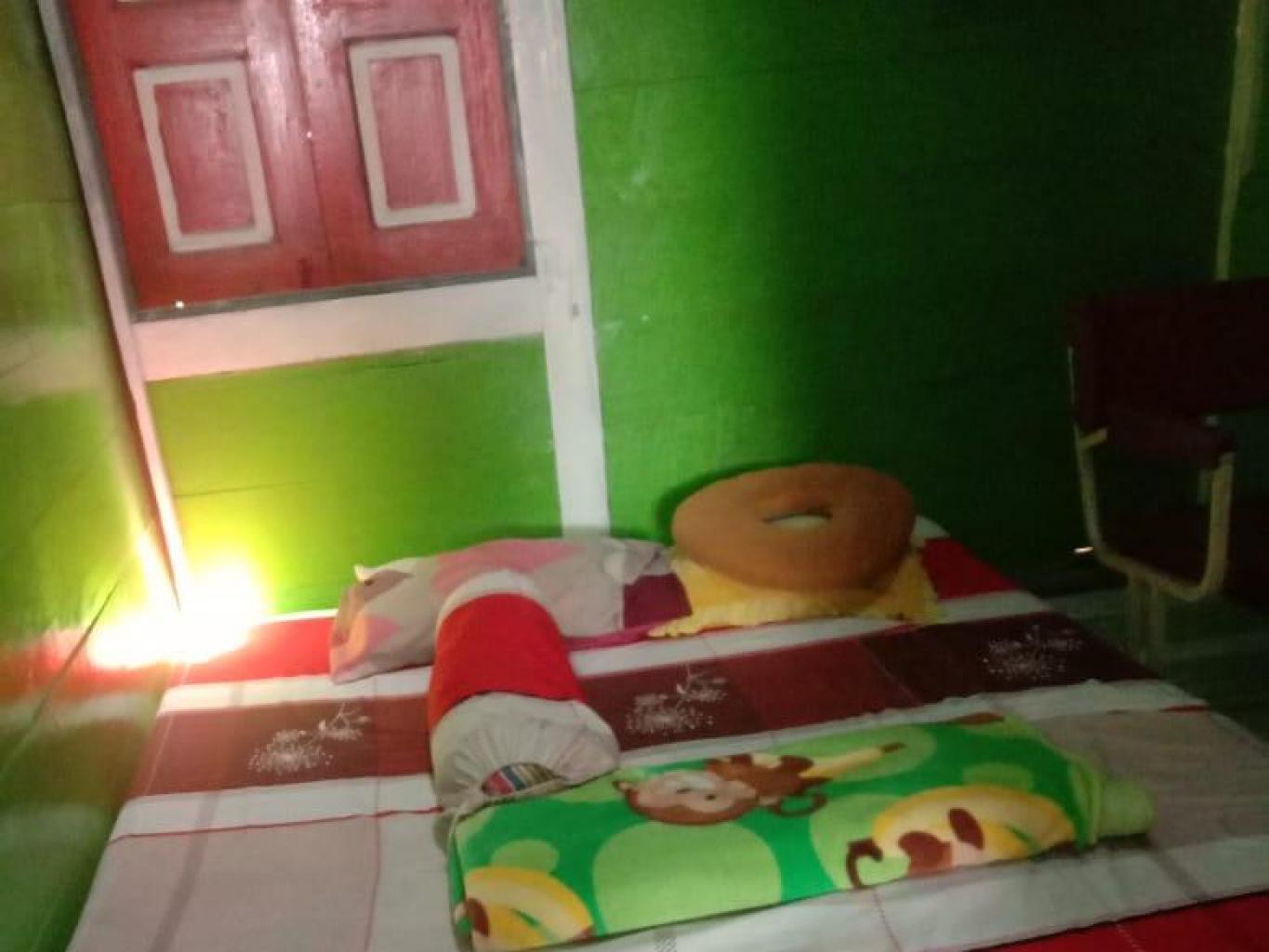 Ukuran kamar 3 m x 2,5 m, tersedia 1 kasur besar untuk orang perkamar, terdapat gantungan baju, colokan, tempat sampah, serta bantal, guling, dan selimut