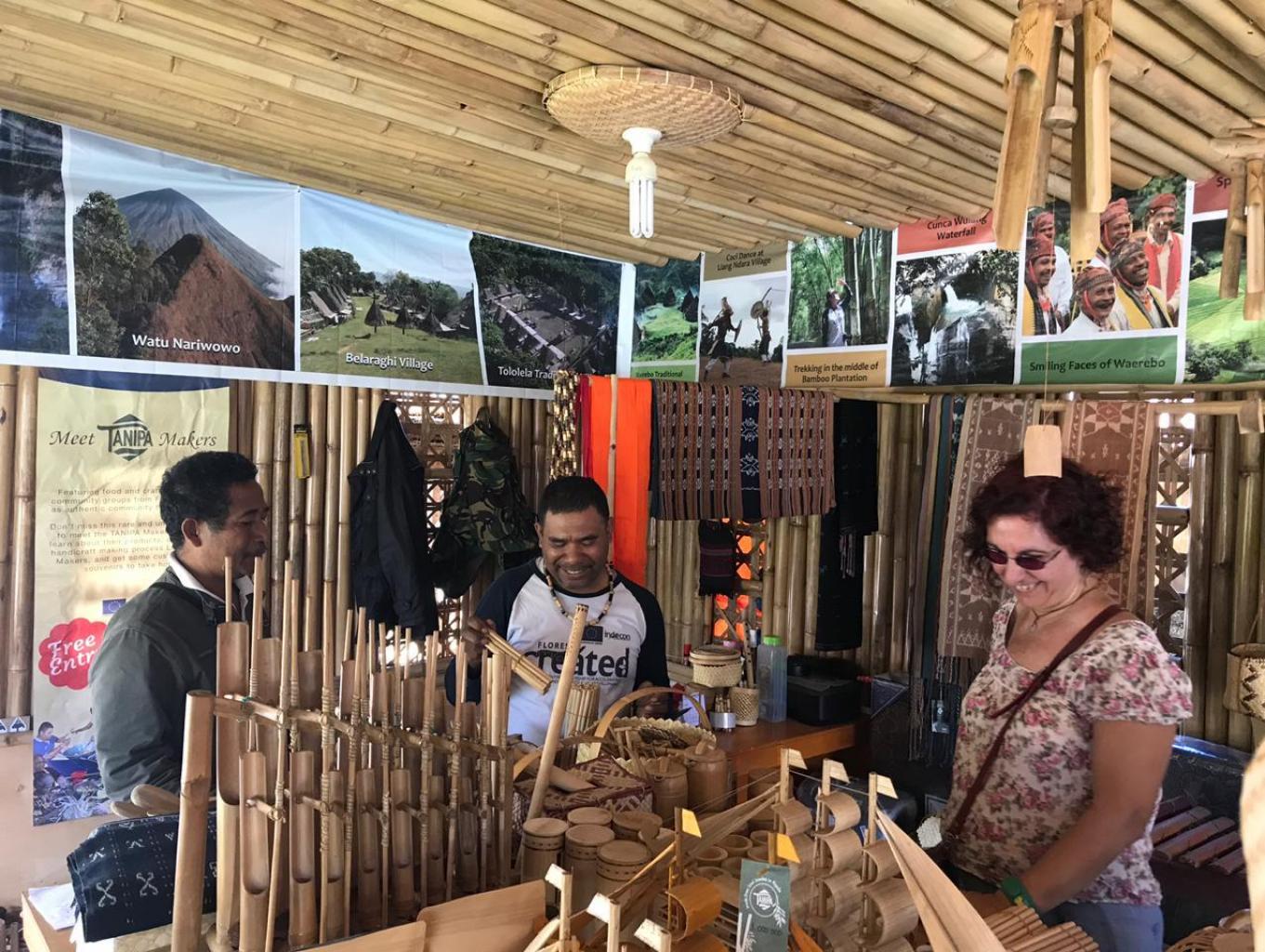Souvenir bambu terdiri dari anyaman,peralatan makan,gantungan kunci,gelang,kalung,miniatur,alat musik tiup.