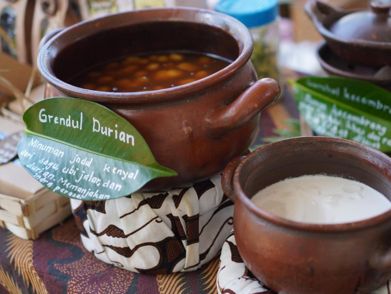 Grendul Durian merupakan bubur yang terbuat dari tepung ketan dan tepung beras dengan bentuk bulat-bulat berwarna cokelat seperti isi salak karena diberi campuran gula aren/jawa dan durian. Rasanya yang manis dan gurih sangat cocok dinikmati saat azan magrib berkumandang.