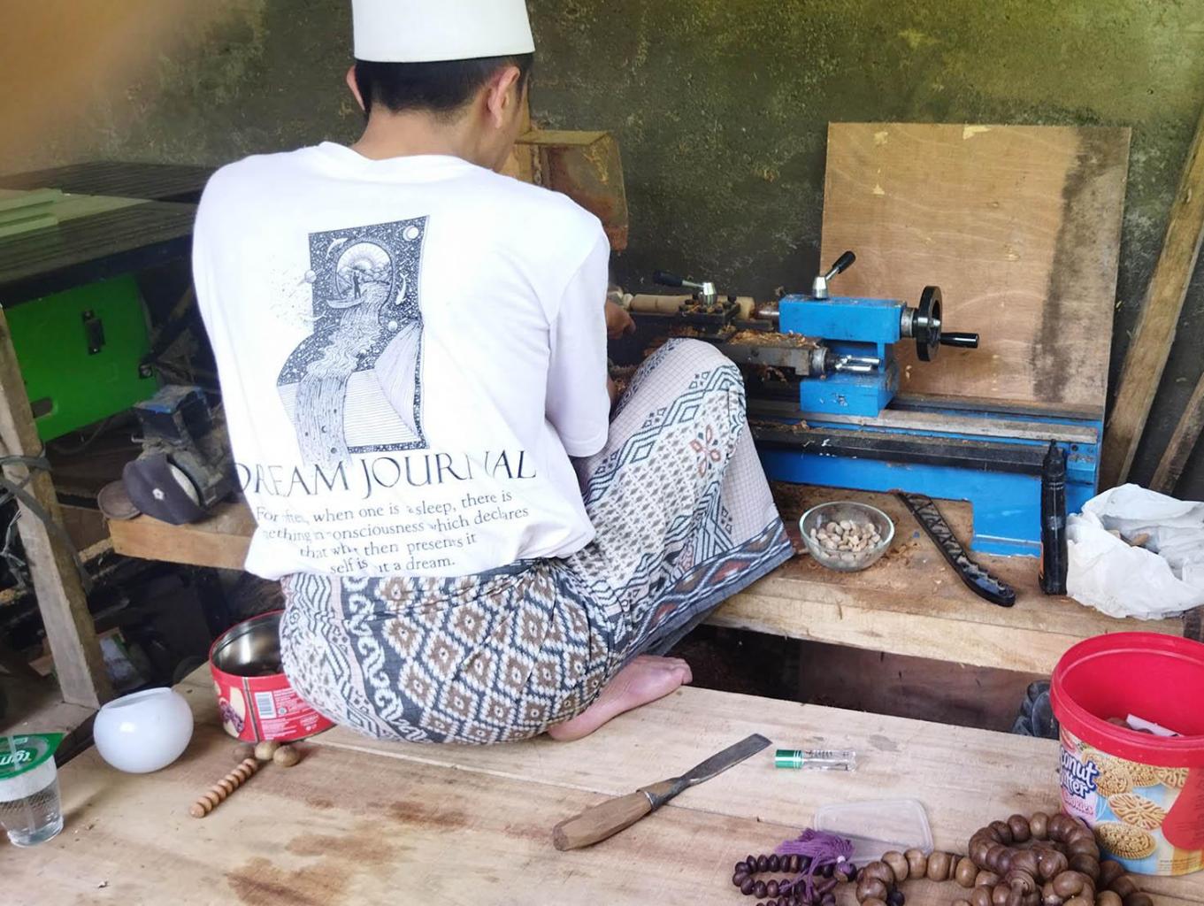Tasbih Kayu yang berbahan dasar kayu. Untuk bentuk dan jenis kayu bisa menyesuaikan dengan keinginan konsumen dan juga bisa menyaksikan langsung proses produksinya sehingga menjadi salahsatu nilai tambah dalam berwisata di Cadas Ngampar